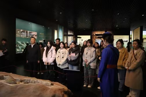10月26日下午,内蒙古博物院迎来了一场别具一格的“行走的思政课”。内蒙古师范大学马克思主义学院中华民族共同体概论教研室主任许星杰邀请毛泽东思想和中国特色社会主义理论体系概论教研室主任杨瑞霞以及青年教师穆鹏云,共同带领学生走进文物展厅,将《中华民族共同体概论》课程从教室转移到展厅,展开了一次“与历史对话,品交融之美”的沉浸式教学活动。在红山玉龙与匈奴王冠的见证下,千年的民族交往交流交融历史成为最生动的教材。
