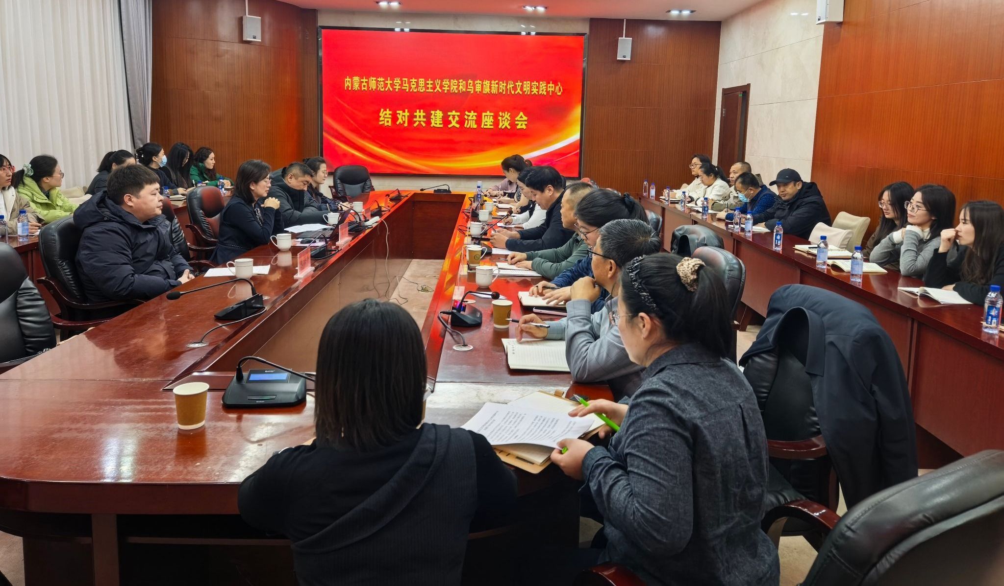 12月11日,内蒙古师范大学马克思主义学院与乌审旗新时代文明实践中心举行结对共建交流座谈会。双方围绕共建理论传播前沿阵地、打造育人实践优质平台展开深入交流,并就构建长效合作机制、加强理论指导、组建跨学科协同团队、推动科研成果转化等关键举措达成共识。
